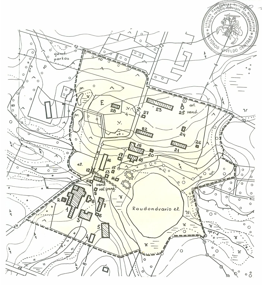 Dvaro palivarkas – ramybės zona Instituto gatvės sklypas istoriškai priklausė dvaro palivarkui – ūkiniai pastatai, sodai, takai ir želdynai kūrė ramią, uždarą erdvę šalia reprezentacinės dvaro dalies.