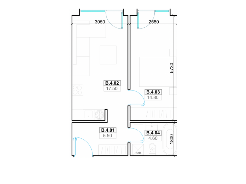 | Plotas | 42,40m² |